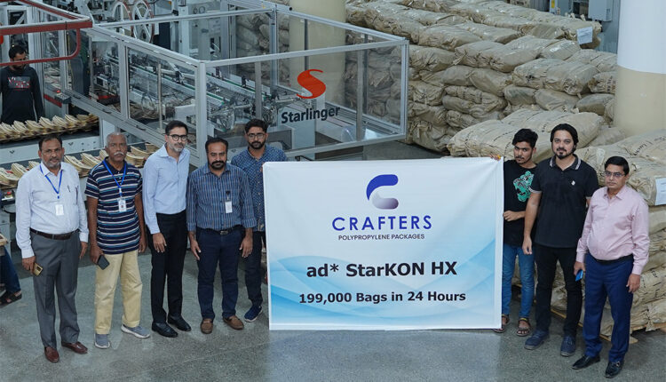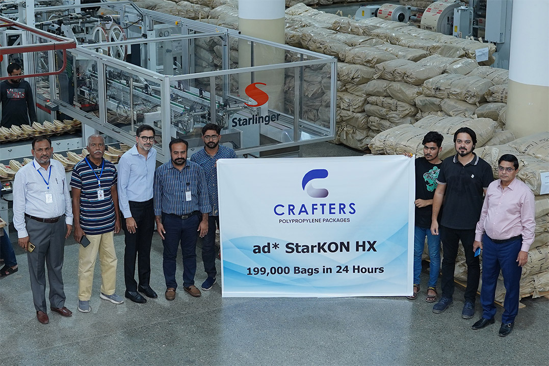 By producing 199,000 AD*STAR block bottom sacks in 24 hours on a single conversion line, Crafters Polypropylene Packages (PVT) Ltd. has achieved a production record that has never been reached before for this type of sack.